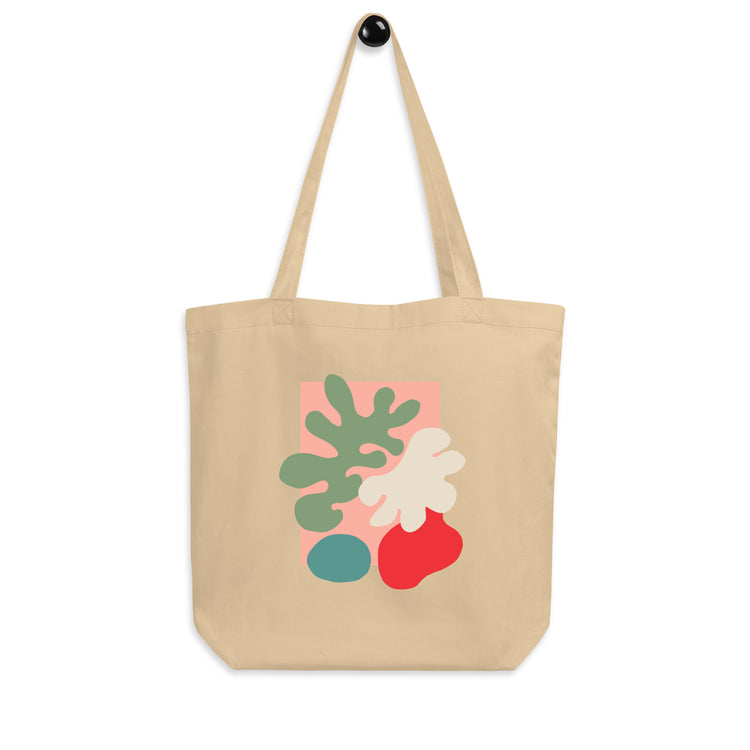 Fresh and modern, this eco-friendly tote highlights an abstract botanical design in playful organic shapes and colors. A versatile bag that blends art and sustainability, making it ideal for errands, books, or daily carry.